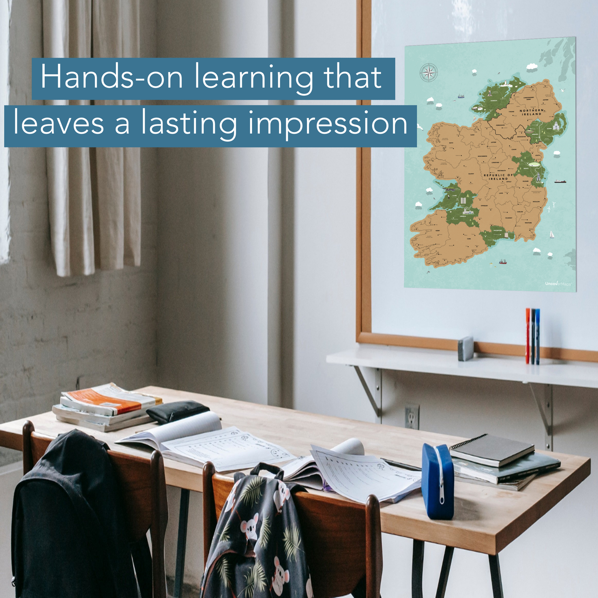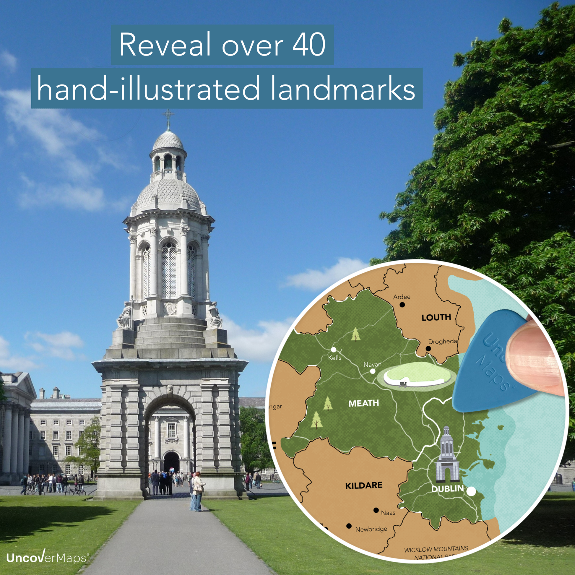 Our beautifully illustrated Island of Ireland scratch off map features 40+ unique hand-drawn icons of popular landmarks, national parks, major roads and towns along the way.